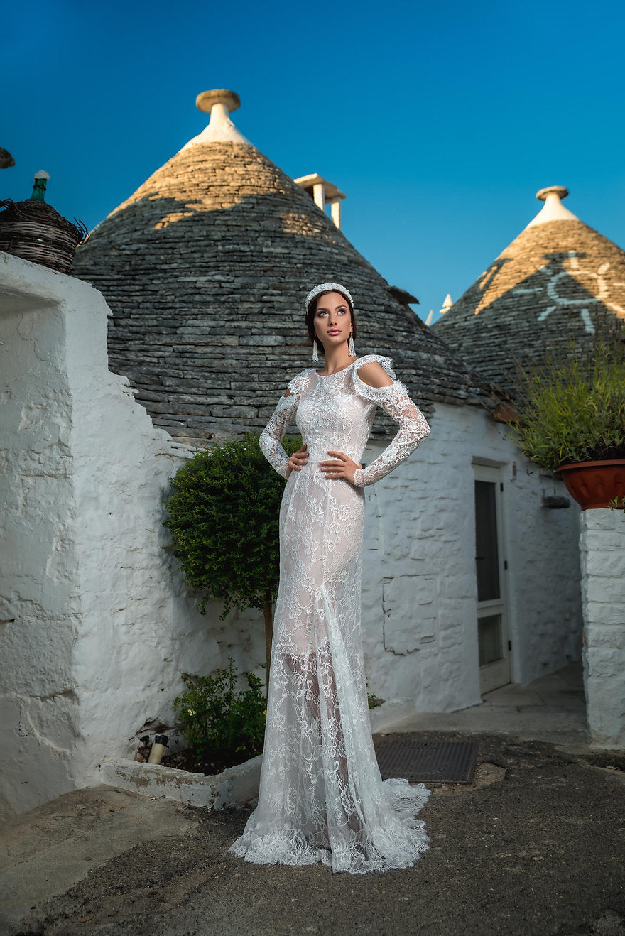 The color of the dress shown - ivory with nude backlight